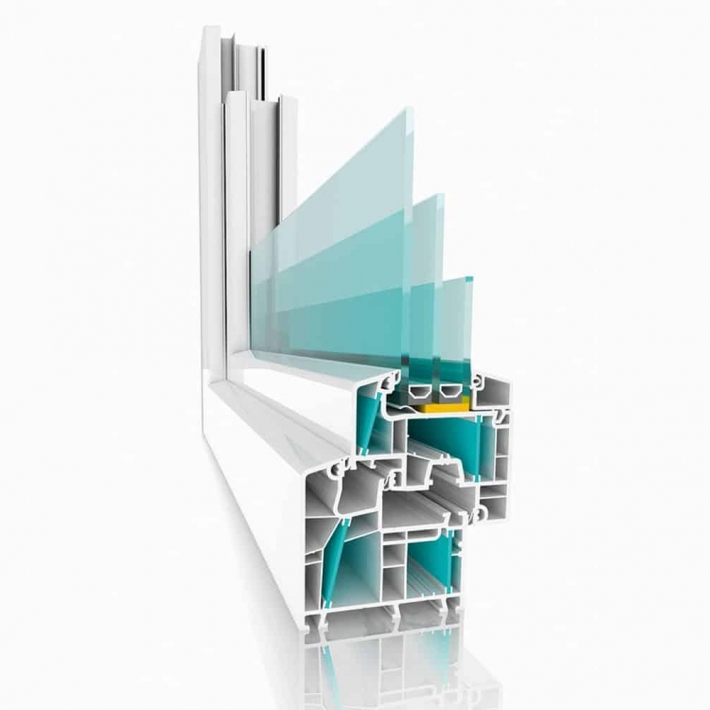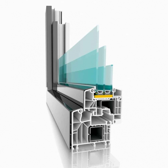 Geschützte Beschlagskammer durch festen Mitteldichtungssteg | Passivhaus tauglich | Effiziente Schalldämmung: bis 45 dB | Beste Wärmedämmung: bis 0,80 W/m2K | Uf-Wert: 1,0 W/m2K | Funktionsgläser bis zu 41 mm