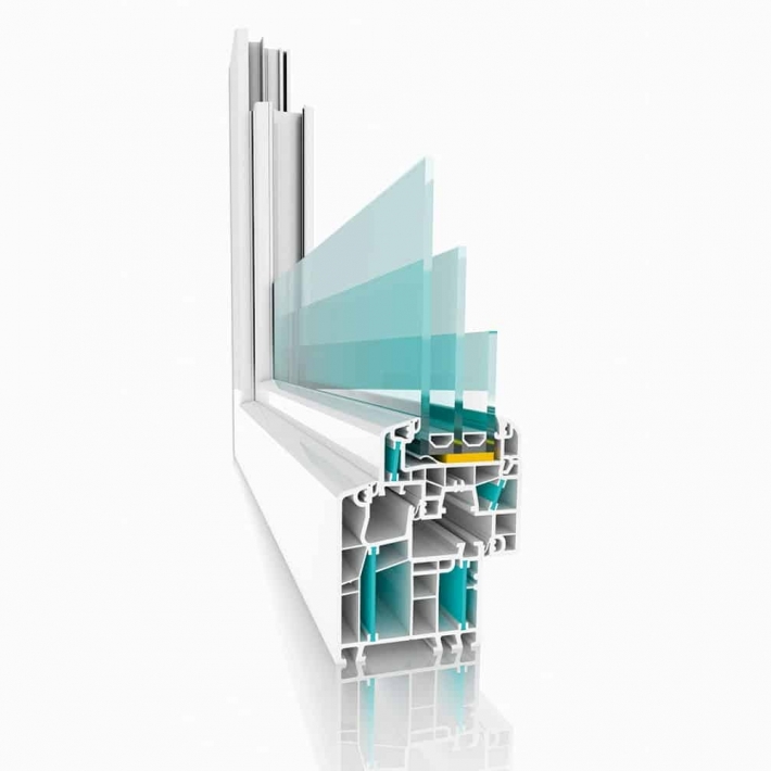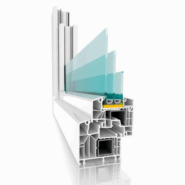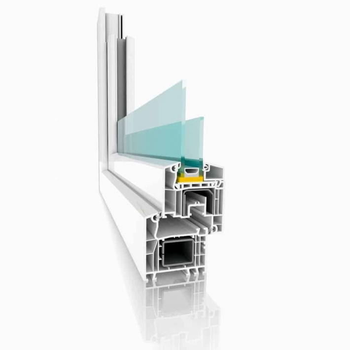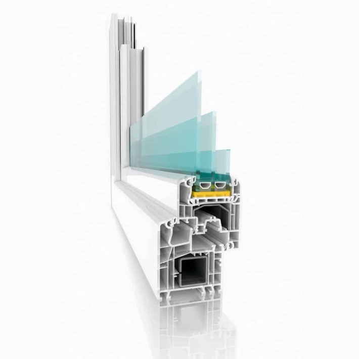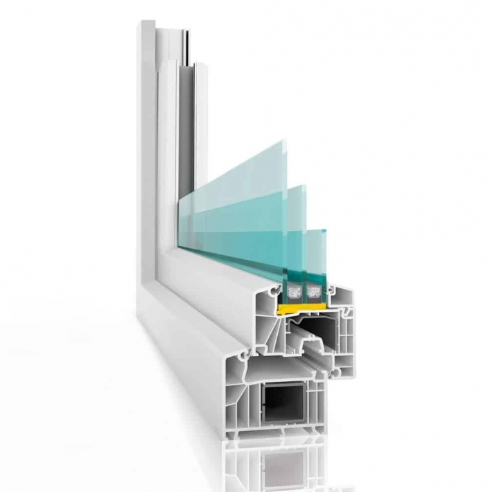 Geschützte Beschlagskammer durch festen Mitteldichtungssteg | Passivhaus tauglich | Effiziente Schalldämmung: bis 45 dB | Beste Wärmedämmung: bis 0,80 W/m2K | Uf-Wert: 1,0 W/m2K | Funktionsgläser bis zu 41 mm